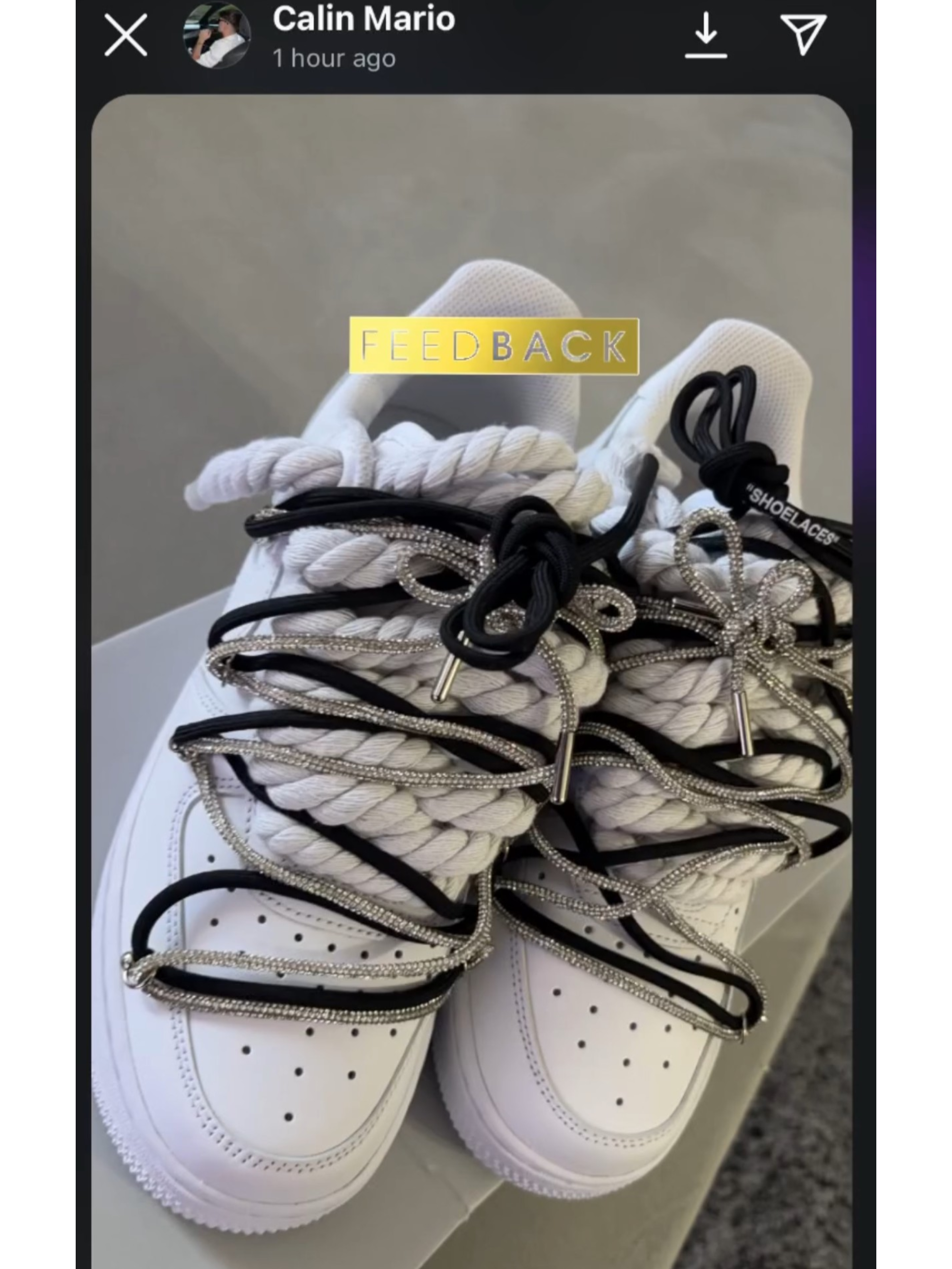 Nike Air Force 1 White "Black Silver Diamond Overlace"