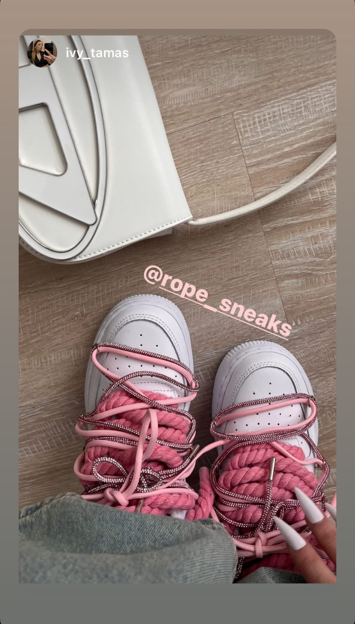 Nike Air Force 1 White "Silver Pink Diamond Overlace"